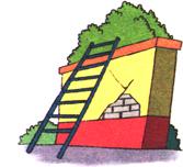 The ladder stands against the wall.梯子靠墙放著。
