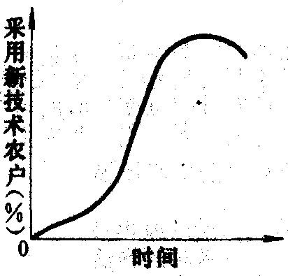 适宜采用该技术的地区的农户相继采用后,推广速度又放慢下来,最后稳定在某个推广规模水平上。当出现替代该种技术的更好的技术时,采用该种技术的农户又将逐渐减少,于是开始了另一种新的技术推广速度的S形增长(1)。