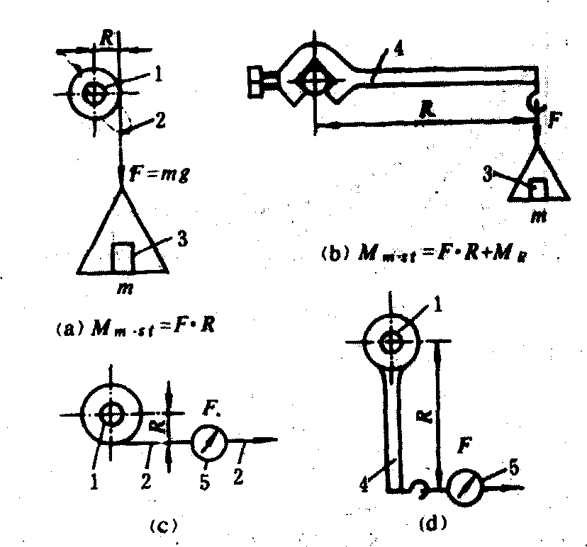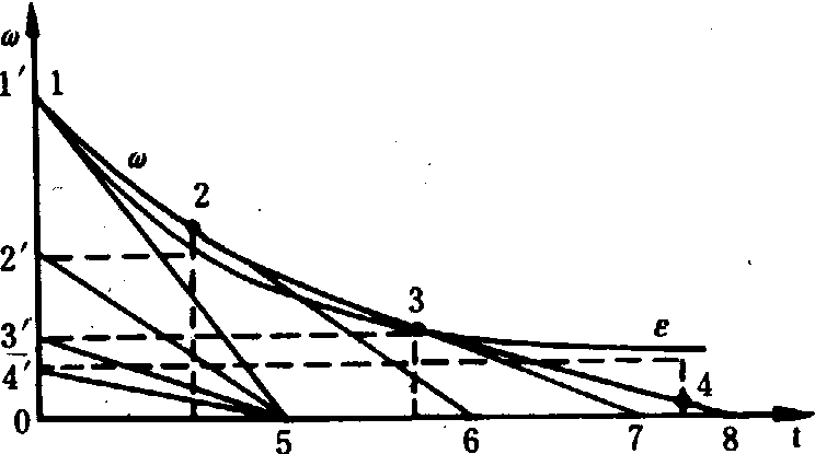 释义 | 农业机械电力拖动试验test of electric drive for agricultural machines获取农业机械的拖动参数的方法。用以分析农业机械电力拖动的工作条件,正确选择电动机,保证拖动系统具有良好的动力性能。获取农业机械的启步转矩、空载机械特性、空载损耗特性、运动系统的惯性矩、启动加速时间及负载图等,是实现机电设备的合理配套及提高用电设备的使用技术水平的科学基础。 Ku2·Mst≥Mm.st+0.25MN (1) 式中 Ku=U/UN为电动机启动时的相对端电压,UN为额定电压(伏),U为实际电压(伏);MN为电动机的额定转矩(牛·米)。启步转矩的大小,主要取决于生产机械运动副的摩擦阻力,且与生产机械的技术状态、装配质量、轴承润滑状况、工作机构中残存加工产品的程度等因素有关。由于生产机械零件间静态摩擦系数通常大于动态摩擦系数,所以生产机械的启步转矩大于启动后的阻转矩值。 生产机械拖动轴的启步转矩可以简便的方法测定(图1)。测定时读取n次数值后取其平均值,再由图中公式计算求得,式中MR为由杠杆自身所形成的转矩。 图1 生产机械启步转矩的测定 1.生产机械的拖动轴;2.绳索;3.重物;4.杠杆;5.拉力计 绘制生产机械的机械特性 生产机械的机械特性Mjm=f(ωm)是用以评价生产机械的启动条件和其拖动电动机的工作状况的。求取的方法可有以下几种: 利用经标定的直流他激电动机绘制 “标定”即要对拖动电动机进行损耗分析,测得其电枢电阻,并在保持激磁电流的条件下,测得不同转速时的空载损耗,且给出其铁损及机械损耗曲线。绘制生产机械的机械特性时,该机械由此标定的电动机拖动,使之以不同角速度(从0至1或1.1ωMN,ωMN为生产机械的额定角速度)旋转。试验中记录电枢电压Ua、电流Ia及角速度ωa。 生产机械在每一转速下的阻转矩Mjm为: Mjm=Md-MNL (2) 式中 Md为直流电动机的电磁转矩(牛·米);MNL为直流电动机的空载转矩(牛·米),MNL=C·Ia.NL,IaNL为直流机的空载电枢电流(安), C为常数, 可自直流机的空载试验求得。根据公式计算出在不同角速度下的生产机械的阻转矩, 便可绘制其机械特性。利用惯性运动曲线绘制 当拖动电动机在运转情况下,切断电源时,生产机械在运动系统的惯性作用下继续转动,待其储存的动能在克服系统旋转功率损失中消耗殆尽,生产机械遂停止,这个过程就是惯性运动过程,亦称为自制动过程。可在电动机的同轴上接装一台直流测速发电机,其电势正比于转速,以自记式伏特计在切断电源后, 记录发电机的端电压, 因端电压是与生产机械的角速度ωm相对应的, 于是可绘制惯性运动曲线ωm=f(t), 如图2, 并根据此曲线绘出ξ =dωm/dt=f (t)。 图2 惯性运动曲线 因惯性运动方程为: -Mjm=J(dωm/dt)=J·ξ (3) 于是在已知生产机械的惯性矩J,并选定适当的比例常数,根据ξ=f (t)得到的ξ=f(ωm)曲线,就是生产机械的机械特性Mjm=f(ωm),如图3。式(3)中的Mjm是因生产机械而异的,如为恒定、线性、风机型等。 图3 生产机械的机械特性 绘制生产机械的空载特性 生产机械仍由标定的直流电动机拖动,试验前要经半小时试运转,然后在保持电动机的激磁电流恒定的条件下,均匀调节其转速,在不同转速下测定电动机的端电压和电枢电流,然后计算空载损耗及空载阻转矩: PNL=UT·Ia-△p=UT·Ia -〔I2a·Ra+(△pMex+△pFe)+△pd〕 (4) MjNL=9550(PNL/nNL) (5) 式中 PNL为电动机的空载损耗,即生产机械在空载时所需的功率(瓦);UT为电动机在不同转速下的端电压(伏);Ia为与UT相应的电枢电流(安);△p为电动机在对应不同转速下的总损耗(瓦),其中包括:I2a·Ra为电动机的电枢电路铜损耗(瓦);△pMex+△pFe为电动机在对应的转速及激磁电流下的机械损耗及铁损耗之和(瓦);△pd为附加损耗(瓦);MjNL为生产机械的空载组转矩(牛·米);nNL为与PNL相对应的转速(转/分)。图4 生产机械的空载特性 根据试验数据经计算,可绘制生产机械的空载特性,如图4所示。对于复杂的农业机械,尚需测定个别工作机构的空载特性,可由生产机械整体的空载特性减去断开该工作机构时测得的空载特性,求出该工作机构所消耗的功率及其阻转矩。 确定生产机械的惯性矩 生产机械的惯性矩指折合到电动机轴上的惯性矩,确定的方法有以下几种: 飞轮阻尼旋转法 先要选定两个具有相同质量与形状的附加飞轮,它们的惯性矩分别为J1g与J2g,为确定生产机械的惯性矩,将它们分两次装在工作机械上,作两次惯性运动试验。试验时保证机组的空载阻转矩变化规划相同。电动机切断电源(Md=0),即进入惯性运动,此时拖动运动方程为: -Mmj=(JM+Jd+Jg) (dω/dt) (6) 式中 Mmj为拖动系统的静阻转矩(牛·米);JM为折合至电动机轴上的生产机械惯性矩(千克·平方米);Jd为拖动电动机的惯性矩(千克·平方米);Jg为折合至电动机轴上的附加飞轮惯性矩(千克·平方米);ω为电动机的角速度(1/秒);t为惯性运动时间(秒)。当拖动生产机械分别带有第一个和第二个附加飞轮时,电动机转速从起始ω1至全部停止,测得拖动惯性运动时间为t1及t2。于是可得: JM=Ja-Jd (8) 式中 Ja为全机组的惯性矩。重物降落法 在生产机械的驱动轮(半径为R米)上缠绕绳索,绳索的自由端系以重物,为了确定生产机械的惯性矩,也要作两次加速试验,试验时所系重物质量分别为m1及m2,以产生大于阻转矩的恒定转矩(图5)。 试验时,放开重物,使在h距离内获得加速,两次试验相同,分别记录所需时间t1及t2。重物加速为: a1=2h/t12;a1=2h/t22 