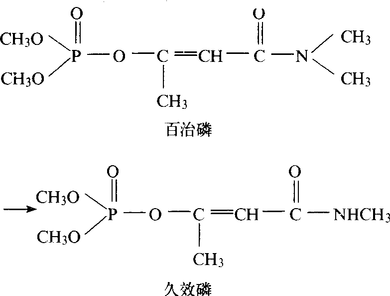 氧取代硫的反应 由于上述几个氧化反应中的代谢产物狄氏剂、氧乐果比母体化合物对昆虫具有更好的生物活性而被开发为农药。 水解反应 由水解酶催化的初级代谢。促使农药发生水解反应的酶有很多种,如羧酸酯水解酶(carboxyl ester hydrolase),羧酸酰胺水解酶(carboxylamide hydrolase),氨基甲酸酯水解酶(carbamate hydrolase),环氧化物水化酶(epoxidehydrase)等。初级代谢以水解反应为主的农药有:有机磷酸酯类、氨基甲酸酯类、硫代氨基甲酸酯类、苯脲类、酰胺、腈和羧酸等。农药水解反应的实例如下: