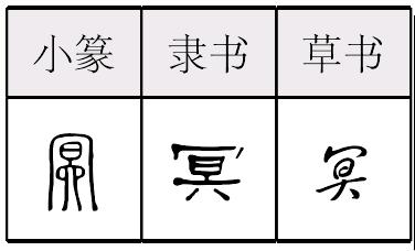 ❸ 薄暮冥冥|长夜冥冥|苦思冥想 冥míng会意、形声字,“冖”(mì),像布幕下覆,有笼罩的意思,兼表音。太阳(日)被云雾笼罩,黯然。小篆有一款为只有“冖”与“日”。加“六”,强调阴暗。从《易》学看,九为老阳,六为老阴。六,可参与表意,阴也。《广雅》:“冥,暗也。”“深林杳以冥冥兮,乃猿狖之所居。”(《涉江》)冥冥,阴暗的样子。作声符生成的字有: míng 暝(日落,《玉篇》:“夜也。”) 蓂(蓂荚,传说中的吉祥草) 瞑(死不瞑目) 螟(螟虫) 溟(《广韵》:海也。“北溟有鱼,其名曰鲲。”——庄子《逍遥游》) 冥(mínɡ)“ ,幽也。从日,从六,冖声。日数十,十六日而月始亏幽也。凡冥之属皆从冥。”(莫经切) 甲骨文有 字,解说不一。唐兰说字形象两手以巾覆物形;于省吾《甲骨文字诂林》释为冥字,读为“娩”,字形象双手助产之形。卜辞中有“子娩”(《合》13975)。又《屯》附22亦有“小臣娩 ”之记载,小臣为女性。卜辞中还借用为地名,如《合》7842及7845。[1]黄德宽云:“冥,从旲(《玉篇》:‘旲,日光也。’)从冖,会日落幽暗之意。冖亦声。小篆误旲为昗。……诅楚文‘冥室’,暗室。”[2]或说其形表示人头顶的太阳被覆盖之意,即冥暗。冖用为冥字声符,后“大”讹变为“六”。[3] 许慎用“幽暗”解释之。“日数十”,意思是说,一个月三旬,一旬十日,十天干之数尽而循环。“十六日而月始亏幽”说每月的十五月亮最圆,从十六开始,月亮慢慢亏缺幽暗。段玉裁注:“冖者,覆也,覆其上则窈冥。……日之数十,昭五年《左传》文。谓甲至癸也。历十日,复加六日,而月始亏,是冥之意,故从日六。” 冥部只有一个属字。 *冥〔 〕míng10画 冖部 (1) 昏暗:幽~| 云雨~晦。 (2) 幽深;深沉:~思|苦思~想。 (3) 〈书〉 高远;也指天空:苍~。 (4) 愚昧:~顽。 (5) 迷信的人称人死后去的地方;阴间:~府|~钞|~衣。 冥 ☚ 冥部 晶部 ☛ 冥★常◎常