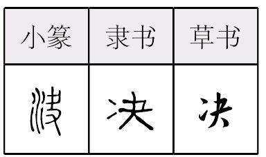 jué決,形声,从水,夬(jué)声,本义为疏通水道,引申为洪水冲破堤岸、分辨、判断、决定、判决、处决、副词(相当于“一定”“必定”)等。俗字作“决”,意符改为冫(冰)。《异体字表》以“決”为异体字。 【辨析】 ❶决/绝 这两个字在普通话里读音相同,都可以用作副词,放在“不、无、非、未、没有”等否定词的前面,表示一定、必定的意思,但习惯用法稍有不同,如“决不退缩”的“决”一般不作“绝”,“绝无仅有”的“绝”一般不作“决”。 ❷决/缺 见340页“缺”。 |