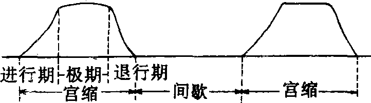 ❶节律性,这种节律是不随意的,即不受意志所支配的。每次节律由弱渐强(进行期),随后由强转弱(退行期),直至消失而进入间歇期。宫缩时,子宫肌壁及胎盘受压,致使血流减少;但间歇时,子宫肌肉松弛,子宫及胎盘血流量又恢复到原来的水平。宫缩的这一节律性对胎儿有利(见图6.5-3)。