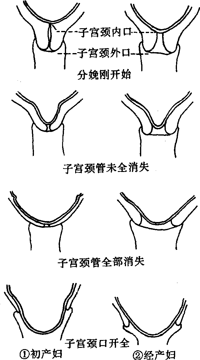 图6.5-6 子宫颈管消失与子宫颈口扩张步骤