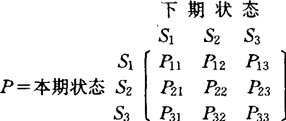 解决风险型决策的关键是估计自然状态的概率。为此,❶决策者先初步提出一个自然状态概率的估计值,称为先验概率。 ❷通过试验或调查研究取得有关自然状态的附加信息。 ❸利用获得的附加信息修改先验概率,称为后验概率。上述方法称为贝叶斯分析。应注意:仅当调查或试验所获效益大于费用时此法才有应用价值。 序贯决策 按照同一目标相继采取一系列的决策活动以实现总体优化的决策过程。解决这类问题通常采用动态规划法(见数学规划)。序贯决策有确定型和风险型两种,后者也称为随机序贯决策,解决随机序贯决策时涉及马尔科夫过程。系统从一种状态向另一种状态转移的概率称为转移概率。如果此转移概率只取决于现在的状态而与以往的经历无关,则这种变化过程称为马尔科夫过程。 例如某地区的天气可分为晴、阴、雨三种情况。设用S1、S2、S3分别表示这三种天气的状态,则这三种天气相互转移的情况可用转移概率矩阵P表达如下: