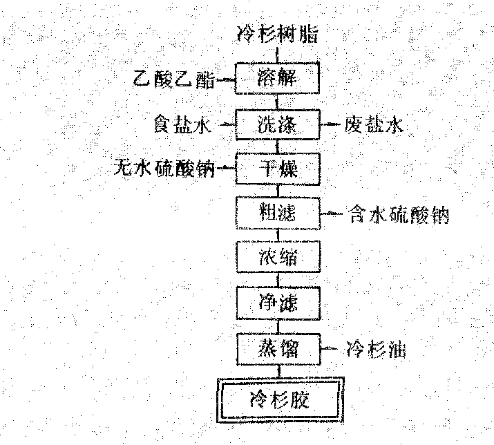 释义 | 冷杉胶abies balsam由松科冷杉属树木分泌的树脂经加工制成的天然树脂产品。又称加拿大香脂。 冷杉胶加工工艺流程图 100份冷杉树脂溶解于100~150份乙酸乙酯中,加100份3%的食盐水,充分搅拌,洗涤2次,除去水溶性物质和尘土等杂质。用无水硫酸钠加入树脂溶液中脱水。以中速滤纸过滤。将过滤后烯树脂液减压浓缩。浓缩后用5号玻砂漏斗过滤。将滤过的树脂进行减压蒸馏除去树脂中的溶剂和挥发油,蒸馏到树脂符合所需针入度时,将蒸馏瓶送入无尘室,将树脂迅速倒入包装容器中,冷后得到固状冷杉胶。在固状冷杉胶内加入干胶量1/3的二甲苯即成液体冷杉胶。 为了改善冷杉胶的气味、韧性、耐低温性能,在冷杉胶中添加香料、香精或定香剂,以抑制其受热时散发出来的臭味。添加无毒、无臭、色浅、化学性稳定的增塑剂,以提高冷杉胶的韧性和耐低温性。 性质和用途 冷杉胶为浅黄色透明固体,折射率n20D 1.5200~1.5400,线膨胀系数α0-25 1.6~2.0×10-4,比重d2020 1.05~1.06,酸值96~110,皂化值124~135。 冷杉胶具有良好的透明度、不结晶、较强的胶合力、迅速固化等特性,折射率与玻璃相近,能耐高低温,便于拆胶。主要用作胶粘剂,如光学仪器透镜、地质矿产磨片和生物切片的胶合。还用作抗菌剂和痔疮处理剂;牙齿根管封闭拼料;肥皂、洗涤剂、雪花膏和香水的定香剂或香精配料;头发的修饰剂;治疗烧伤、溃疡、刀伤以及心脏和胸腔疼痛。 冷杉胶lengsha balsam由东陵冷杉(Abies nephro-lepis Maxim.)、岷江冷杉(Abies faxoniana Reld. et Wills.)分泌的树脂加工而得的一种天然树脂。最初由加拿大冷杉(Abiesbalsamea Mill.)的树脂中提取,故又称加拿大香胶(Canada bal-sam)。黄色透明固体,密度(20℃)1.05~1.06,折射率(20℃)1.520~1.540,线膨胀系数(25℃)1.6×10-4~2.0×10-4,酸值96~110,皂化值124~135。冷杉胶有良好的透明度,较强的胶合性,线膨胀系数小,折射率与玻璃相近,适用温度范围—50~70℃。主要用作胶黏剂,如光学仪器、透镜、棱镜、地质矿产磨片和生物切片的胶合,医药上用作抗菌剂、牙科黏结剂,烧伤、溃疡等的处理剂。此外,还用于橡胶胶合剂和增黏剂,压敏胶黏剂,热熔胶黏剂,肥皂、洗涤剂、雪花膏的定香剂或香精配料。 冷杉胶又称”冷杉树脂”。从冷杉树皮中获得的含油树脂,经溶剂溶解、净化、蒸馏等工序制得的浅黄色、透明的产品。具有迅速硬化、不结晶等性能。用作光学玻璃的粘合剂。 |