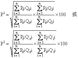 式中,PI为股票价格指数; n为样本股票数; P1i为第i种样本股票的报告期价格;P0i为第i种样本的股票基期价格; Q0i为第i种样本股票的基期交易量; Q1i为第i种样本股票的报告期交易量; Q’0i为第i种股票的基期发行量; Q’1i为第i种股票的报告期发行量。几何平均法 几何平均法geometric average approach股票价格指数的计算方法之一。其公式为: