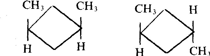 又称顺反异构,是立体异构的一种。这类异构现象只发生在含双键的化合物或环状化合物分子中。碳碳双键两个碳原子上各连有两个不同的原子或基团时,由于双键不能自由旋转,可能有两种不同的排布形式。如两个相同原子或基团处于双键同一侧叫做顺式,处于双键两侧叫做反式。如果两个碳原子上所连接的4个基团各不相同,一般用“Z,E”命名法,按照次序规则 (参见“取代基次序规则”) 两个碳原子上所连的较优基团处于双键同侧为Z型,处于双键两侧为E型。Z,E与顺、反有时一致,有时不一致。如含碳碳双键的化合物并不都有几何异构。只要双键的一个碳原子与两个相同的原子或基团连接时,就不存在几何异构。由于环的存在,碳碳单键的自由旋转受到限制,处在环的平面上或下的取代基引起的异构现象,也是顺反异构。环状化合物(指单环化合物) 只用顺反命名,不用Z,E表示。如:顺-1,3-二甲基环丁烷 反-1,3-二甲基环丁烷