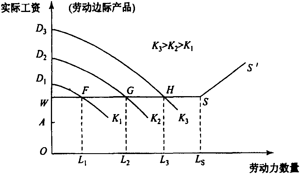 释义 | 刘易斯模型 刘易斯模型农业剩余劳动力的转移过程可以用图6说明。图中OA表示农业部门维持最低生活水平的实际收入,OW表示工业部门的实际工资。WSS′是工业部门的劳动供给曲线,D1K1、D2K2、D3K3分别为不同资本量下工业部门的劳动需求曲线。对工业部门而言,在OW工资水平下,来自在农村的劳动力供给是无限的、具有完全弹性的,即不必提高工资,就能不断得到来自农村的劳动力的源源供给。劳动供给曲线是一条完全水平的直线WS。假定工业部门在初始阶段的资本量为K1,当资本固定为K1而逐渐增加劳动投入时,按照生产要素边际报酬递减规律,劳动的边际产品将逐渐减少,如曲线D1K1所示。这条曲线也正是工业部门的劳动需求曲线。工业部门雇用工人的数量由劳动供给曲线和劳动需求曲线的交点决定,当资本量为K1时,雇用的劳动力数量为OL1。工业部门的总产量为OD1FL1,付出的工资总量为OWFL1,剩余产出即利润量为O1FW。利润可以再投资而形成资本,使资本量由K1增加到K2。重复这一过程,就使工业部门的资本量继续增加,雇用的劳动力数量随之增加,利润额不断扩大,工业生产规模不断扩张。 图6 刘易斯的农业剩余劳动力转移模型 当工业部门雇用的劳动力数量增加到一定限度,农业部门的剩余劳动力已经全部转移到工业部门时,农业中的劳动边际生产率将提高,农业劳动力的收入也将提高。此时,工业部门要得到更多的劳动力,就不得不提高工资水平。 在刘易斯模型中,剩余劳动力转移过程可分为两个阶段。第一阶段为劳动力无限供给阶段,资本相对稀缺,劳动力充裕,工业工资不变,利润额不断增加。第二阶段不再存在劳动力无限供给,资本和劳动都是稀缺的,工业工资上升,利润额不一定不断增加。大多数发展中国家还处于第一阶段。由模型可看出,刘易斯把工业部门的资本积累看成经济增长和劳动力转移的惟一动力。农业部门的作用只在于为工业扩张提供劳动力。 ☚ 三元结构 拉尼斯-费景汉模型 ☛ 刘易斯模型Lewis Model由美国经济学家威廉·阿瑟·刘易斯提出的“无限剩余劳动供给”模型。认为发展中国家一般存在着二元经济结构:一个是以土著方法进行生产、劳动生产率很低、劳动收入仅够糊口的传统农业部门,另一个是以现代方法进行生产、劳动生产率较高、工资水平较高的城市工业部门。在农业部门中,存在着大量的“剩余劳动”,这部分劳动力的边际生产率为零或负数,其形式上在劳动,实际上处于“伪装失业”的状态。而在工业部门中,劳动者已实现了充分就业,工资水平又高于农村劳动力收入,导致农村过剩劳动力有流向城市工业部门的自然趋向。只要农业部门中存在伪装失业,只要农业部门和工业部门劳动力收入保持差距,农业部门的过剩劳动力就会对工业部门形成源源不断的无限供给。工业生产的扩大不会引起工资上涨,因为雇用来自农业部门的过剩劳动力而累积起来的利润,可以转化为投资,使工业生产进一步发展,再吸收更多农业部门的过剩劳动力。另一方面,农业部门由于过剩劳动力的逐渐消失,劳动生产率和劳动者收入将逐渐提高,这一过程持续到农村过剩劳动力被全部吸收、工农两部门工资水平相等为止。最终结果将是工业化逐步实现,农业生产率不断提高,国民经济得到持续发展。 刘易斯模型 刘易斯模型Lewis’ Model又称“劳动力无限过剩” 发展模式或二元经济发展模式。与发达国家相比,发展中国家的经济发展具有更大的异质性和二元性,对此荷兰人博克 (Boeke,1953) 在50年代初即有所认识,他在对印度尼西亚的社会经济进行考察后发现,该国的经济和社会可以明显地划分为传统部门和现代的由荷兰殖民主义者所经营的资本主义部门。刘易斯 (Lewis,1954) 发展了这一观点,他从新古典学派的经济发展观出发,假设了一个性质不同的二元经济模型: 一个是仅够糊口的,只能维持最低生活水平的,以土著方式进行生产的“自给农业部门”,在其中存在着无限的边际生产率为零甚至为负的“过剩劳动力”,他们只能领取维持生存的工资;另一个部门是以现代化方法进行生产的 “资本主义部门”,在其中使用可再生产资本,人均装备程度较高,边际生产率和人均收入也较高。按照刘易斯的定义,“过剩劳动力” 是总体劳动力的一部分,他们在形式上是就业的,但实际上对总产出的增加并不起作用,不仅如此,还可能起负作用。这意味着若传统部门的剩余劳动力能转移出去,则不仅不会减少传统部门的产出,而且还有助于提供产出,同时,它还使工业部门的发展获得了必需的劳动力。因此,剩余劳动力在部门间的转移,对于两个部门都是有益无害的。 但这种转移是有条件的: 工业部门的工资水平高于农业部门的人均收入,而且这个差额能足以支付较高的城市生活费,并提供最低限度的诱因; 工业部门必须具备吸收从农业部门转移出来的剩余劳动力的必要条件,即有足够的物质积累; 通过教育和培训,剩余劳动力能转变为熟练劳动力; 等等。过剩劳动力由农业部门向工业部门转移,可用上图表现出来。如图中NR为工业中的劳动边际生产率曲线,OW为工业部门的工资水平,OW1为农业部门的工资水平。假定劳动总产品 (ONPM) 在劳动力和资本家之间进行分配,分为对劳动的工资支付 (OWPM) 和资本家的利润 (NPW)两部分。资本主义部门的增长和对农业剩余劳动力的吸呐就