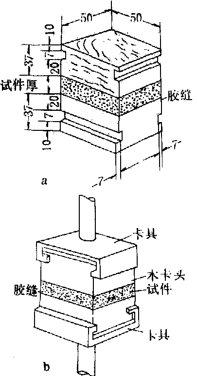释义 | 刨花板物理力学性能physico-mechani-cal properties of particleboard与刨花板用途有密切关联的物理力学性能有密度、含水率、吸水厚度膨胀率、吸湿性、导热性能、吸音性能、静曲强度、平面抗拉强度、弹性模量、平行于板面的抗拉强度、抗压强度、抗剪强度、蠕变性能、抗疲劳性能等。 含水率 5.0~11.0%(GB 4897—85)。按GB4898—85、ISO 823—1975规定,测定含水率试样最小面积为25平方厘米,称重后再在103±2℃条件下干燥至恒重。 吸水厚度膨胀率 一级品≤6%,二级品≤10.0(GB 4897—85)。按GB 4878—85、GB 4901—85规定,测定的试件尺寸为25×25毫米,量测中心点厚度后,浸于20±2℃水中,使水面高于试件20毫米,2小时后,取出试件擦去表面附着水,在原测量点测其厚度,计算吸水厚度膨胀率D。 式中 h1为浸水前试件的厚度(毫米); h2为浸水后试件的厚度(毫米)。 GB 4896~4905—85所规定的物理性能主要还有: ❶吸湿率及吸湿膨胀率。吸湿率15~17%,线性膨胀率0.3~0.5%, 厚度膨胀率12~20%(20℃,φ65~95%,28天,试件尺寸25×25毫米)。 ❷导热性能。垂直于刨花板板面的导热系数0.08~0.12, 一般为0.09千卡/米·时·℃。 ❸吸音性能。普通刨花板(500~850千克/立方米)的吸音能力很弱,但与玻璃棉或泡沫塑料复合使用,具有良好声学性能。低密度刨花板(250~500千克/立方米)属吸音材料,作墙体厚50毫米时,频率范围25~250赫,吸音度αs=0.2;当频率范围为250~4 000赫时,吸音度αs=0.5。 刨花板力学强度 主要有以下几个方面: 静曲强度 平压法刨花板: 一级品≥18.0兆帕;二级品≥15.0兆帕(GB 4897—85)。按GB 4895—85、GB 4903—85规定,测定静曲强度的试件尺寸长度为10×厚度+50毫米,但不小于200毫米,厚度50毫米。支座距离为试件公称厚度的10倍,但不小于150毫米。加荷时间30~90秒。静曲强度σ(兆帕)按下式计算: 平面抗拉强度 一级品≥0.40兆帕,二级品≥0.30兆帕(GB 4897—85)。按GB 4895—85、GB4902—85规定,测定平面抗拉强度的试件尺寸50×50毫米。用聚醋酸乙烯乳胶或同等性能的胶合剂,将经砂磨后的试件和卡头胶粘在一起(见图),待胶固化后进行测试。加荷时间20~60秒,至试件破坏为止。平面抗拉强度Z(兆帕)按下式计算: 弹性模量 一级品2000兆 帕 (GB 4896~4905—85规定为抽测项目)。按GB4898—85、GB 4903—85规定,试件尺寸及设置与静曲强度相同,可与测静曲强度同时进行。绘制压力—挠度曲线,求出曲线中直线的斜率值。各种刨花板因用途不同,弹性模量有很大差异: 普通刨花板1200~2 500兆帕, 建筑用刨花板1 800~4000兆帕,大片刨花板及华夫刨花板3 500~4 500兆帕, 定向刨花板纵向5500~9 000兆帕,横向2 500~2000兆帕。 平面抗拉强度测试 此外,尚有一些必测或抽测的主要力学性能在GB4896~4905-85中尚未规定,主要有:❶平行于板面的抗拉强度为3.5~35兆帕; ❷平行于板面的抗压强度为10~28兆帕; ❸垂直于板面的抗压强度为9~14兆帕; ❹平行于板面的抗剪强度为7.5~10.0兆帕; ❺垂直于板面的抗剪强度为16.5~20.0兆帕; ❻表面剥离强度为8~15兆帕; ❼蠕变性能为用静曲破裂力的10~30%,加载4 000小时后的挠度与跨度之比为1/100~1/300; ❽静疲劳抗弯强度为续载荷超过6个月后,相当于0.5~2分钟内试验获得的静曲强度的50~60%; ❾动疲劳抗弯强度为104~106载荷循环,4~10兆帕。 |