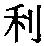 利《广韵》力至·至;lâi‖lì另见lî。 锋利:△刀愈磨愈~,拳愈练愈精dō lǔ bbuá lǔ lâi, gún lǔliân lǔ zīng。 《玉篇·刀部》:“利,剡也。”《尔雅·释诂下》:“剡,利也。”《广雅·释诂四》:“剡,銳也。”《易·系辞上》:“二人同心,其利斷金。”《孟子·公孙丑下》:“兵革非不堅利也。”《荀子·劝学》:“金就礪則利。”唐·白居易《放鹰》:“鷹翅疾如風,鷹爪利如錐。”唐·曹唐《病马》诗之四:“欲將鬐鬣重裁剪,乞借新成利鉸刀。”