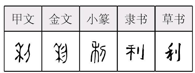 ❹ 百世之利|避害就利|朝名市利|出师不利|除害兴利|除患兴利|船坚炮利|澹泊名利|公私两利|急功近利|计功谋利|甲坚兵利|将本求利|流年不利|平等互利|去害兴利|攘权夺利|攘权争利|贪荣慕利|天时地利|蜗名蝇利|无往不利|虚名薄利|一本万利|蝇头小利|渔翁得利|争名夺利|争权夺利|追名逐利|孳孳为利|自私自利 利利,甲骨文作 ,金文作 ,《説文》古文作 ,小篆作 。 从刀从禾,意爲以刀割禾。或从勿,“勿”是 “刎” 的初文,从刀與从勿表意相同。劉釗説 “勿”是聲符,則是由意符聲化而兼用。“利” 的本義是鋒利,引申爲順利、吉利、利益等義。卜辭、銘文或用吉利、順利、有利等義。 楚簡帛文作 ,沿襲古體。秦簡牘文作 ,古隸典型。 利lì会意字,以刀割禾,本义为锋利。不过,以刀割禾,既显示了刀的锋利,也从收割得益,故有“利益”义。作声符生成的字有: li 阳平:犁(犁田) 梨(梨花) 蜊(蛤蜊) 去声:俐(伶俐) 痢(痢疾) 莉(茉莉花) 猁(猞猁) 相关链接 “黎”由黍、利合成,利表声,右上角是“刀”的变形。 利lì(7画)