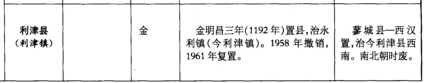 利津县(利津镇)金金明昌三年(1192年)置县,治永利镇(今利津镇)。1958年撤销,1961年复置。蓼城县—西汉置,治今利津县西南。南北朝时废。
