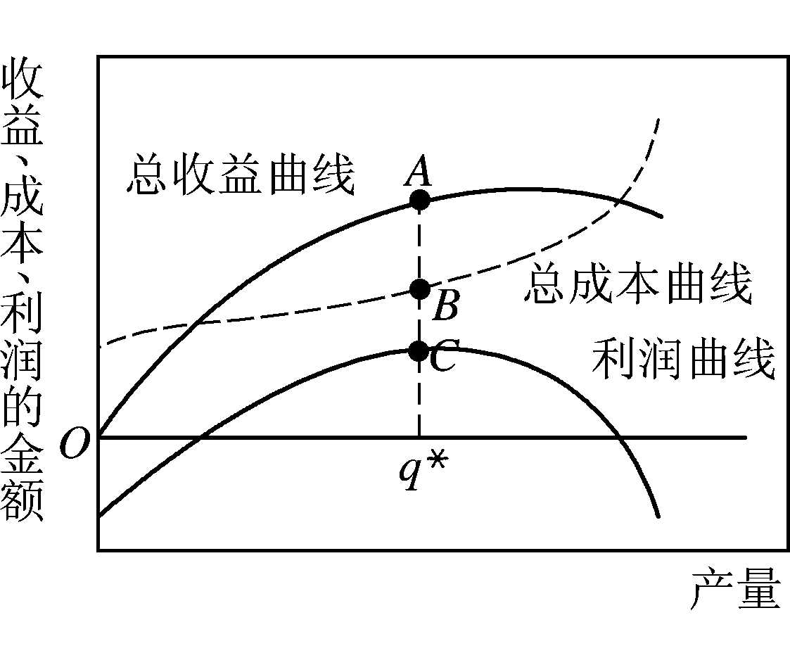 利润最大化Profit Maximization企业经营的目标。必要条件是边际收益等于边际成本,即MR=MC;充分条件是利润函数的二阶导数小于零,即边际收益的变化率小于边际成本的变化率。可以将厂商的利润最大化转化为两种特殊情况: ❶当总成本给定,等价于收益最大化;当商品价格作为不变参数,等价于产量最大化。 ❷当产量给定,价格是不变参数,其收益也给定,利润最大化等价于成本最小化。 利润最大化生产者追求最大利润的行为。生产者把利润最大化作为自己追求的目标,这是微观经济学中的一个基本假定。利润是生产者的总收益减去总成本的差额。生产者的总收益、总成本和利润都与其产量相关,但是利润最大化并不等于产量最大化。因为在不同的产量水平上,总收益与总成本的变动量并不相同,因而利润水平也不相同。特别是当产量上升到一定水平后,总成本的增加将超过总收益的增加而使利润水平下降。因此,生产者需要确定在多大的产量水平上才能使利润达到最大化。现以横轴表示产量,纵轴表示收益、成本、利润的金额,图中给出三条曲线:总收益曲线、总成本曲线和利润曲线。 总收益曲线是表示生产者出售其产品的总收益与其产量之间相互关系的曲线。它表明,当产量为0时,总收益亦为0;随着产量的增加,总收益也增加;当产量超过一定水平后,由于规模不经济,总收益开始下降。总收益曲线的斜率是边际收益(以MR代表)。 总成本曲线是表示生产者的总成本与其产量之间相互关系的曲线。它表明,当产量为0时,由于有固定成本的存在,总成本大于0;随着产量的增加,总成本缓慢上升;而当产量超过一定水平后,企业规模的不经济使总成本迅速上升。总成本曲线的斜率是边际成本(以MC代表)。 利润曲线是表示生产者的利润与其产量之间相互关系的曲线。它表明,在产量水平较低时,利润为负,因为总收益不足以抵补固定成本和可变成本。这时边际收益大于边际成本,增加产量会使利润增加。随着产量的增加,利润上升,直到产量增加到一定水平(q*)为止。这时边际收益等于边际成本(M R=M C),也就是总收益曲线在A点的斜率与总成本曲线在B点的斜率相等。此时,总收益曲线与总成本曲线之间的垂直距离AB达到最大,即利润最大(利润曲线上的C点)。当产量超过这个水平(q*)后,由于总成本的迅速上升,边际收益小于边际成本,使总收益曲线与总成本曲线之间的垂直距离缩小,即利润下降。因此利润最大化的产量水平是边际收益与边际成本相等时的产量水平。在完全竞争市场中,生产者按既定的价格(以P代表)出售其产品,生产者的边际收益等于其产品的市场价格,即M R=P。而生产者所选择的利润最大化的产量水平要求其边际成本等于边际收益,于是: M C=M R=P 在利润最大化的产量下,生产者产品的边际成本等于其边际收益,并等于其市场价格,这一条件就是完全竞争市场中的“利润最大化法则”。