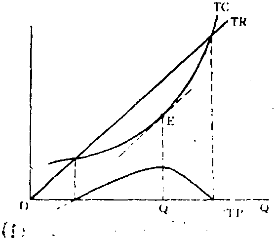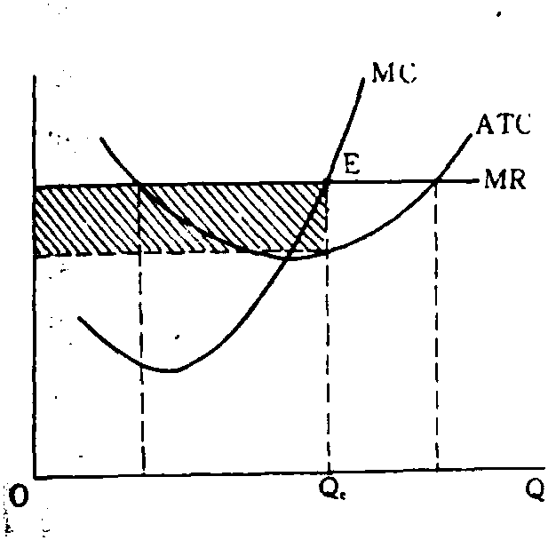 利润最大化 利润最大化profit maximization传统微观经济学关于厂商行为的一个基本命题。通常认为,厂商从事各种决策经营活动的目的,是为了获取最大限度的利润。但也有一些经济学家不同意这种观点,认为厂商特别是现代大公司的经济动机并不仅限于追逐利润,甚至主要的不是为了利润。根据传统分析,利润最大化的一般条件是边际收益等于边际成本,即MR=MC。对此可以利用简单的数学方法来推导。令TR为总收益,TC为总成本,TP为总利润,便有TP=TR-TC; 将该式两端分别对产量求导,得(dTP)/(dQ)=(dTR)/(dQ)-(dTC)/(dQ);由于当一阶导数为零时函数有极值,故最大利润条件应为dTP/(dQ)=(dTR)/(dQ)-(dTC)/(dQ)=0,即(dTR)/(dQ)=(dTC)/(dQ)。这里的dTR/(dQ)就是边际收益,(dTC)/(dQ)就是边际成本,因此上述条件得证。 对于上述条件,也可以用图形来说明。 两图描绘的是,随着销售量增加价格保持不变时总利润的变化情况。在图1中,边际收益曲线与边际成本曲线相交于E点,此时产量为Qe,总利润为矩形阴影面积,显然,此时的面积代表了各种可能的利润水平中的最大利润。图2的图形更明白地证实了这一点,在对应E点的Qe产量上,总收益曲线与总成本曲线的斜率相等,这时它们之间的垂直距离最大,从而总利润达于最大值。