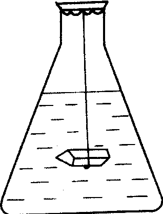 制备大晶体将挑选好的晶种用尼龙丝悬吊在盛有室温下的饱和溶液的锥形瓶中,瓶口罩一块纱布静置于阴凉处 (见图 2) 使水分缓慢蒸发,数天后会看到晶体长大。倘若在晶体成长过程中,晶种上长出不规则微晶,或锥形瓶底出现大量细小晶体,则实验失败,需重新进行。如果实验室有恒温箱,则可以将悬有晶种的锥形瓶置于恒温箱 (温度控制在配制饱和溶液的温度),3天后就能得到较大的晶体。下表所列的是在所述实验条件下得到晶体大小的实验数据:
