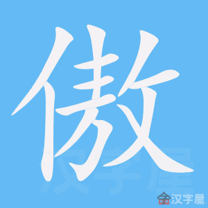 释义 | ![]() 字源解说 敖,既是声旁也是形旁,表示持杖出游,自由不羁。傲,篆文 ![]() ![]() ![]() 附 文言版《説文解字》:傲,倨也。从人,敖聲。 附 白话版《说文解字》:傲,倨傲不逊。字形采用“人”作边旁,采用“敖”作声旁。 引申线索 ![]() 【字族索引】 敖 【同音字】 ào |