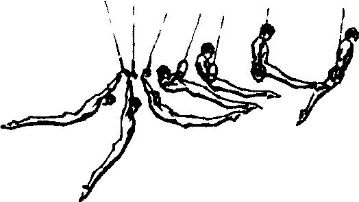 释义 | 前摆上 前摆上是一个中难度的基本动作,1985年的国际规则定为A组难度,1993年国际规则升值为B组难度。一般由后转肩或倒立大摆来连接。当下摆接近垂直面时沉肩振浪,向前上方兜腿。当两腿上摆过环后急剧制动,并直臂用力侧压环,积极振胸,上体快速上跟成支撑。此动作可直接成直角支撑或十字支撑,也可接支撑后摆成倒立,水平支撑或倒十字。该动作所能连接的动作不多,在高级体操运动员中运用也较少。但是,50年代前苏联运动员沙赫林的前摆上接支撑后摆成倒立却给人留下了深刻的印象。 ☚ 屈臂拉上 翻上 ☛ 前摆上 前摆上双杠项目低难度动作之一。在1993年制定的《国际体操男子评分规则》难度表中将该动作定为A组难度。由挂臂撑摆动开始。后摆时,两臂微屈压杠,两腿向后上方摆起并出杠面;前摆时,两臂压紧杠面,身体充分伸展,当身体前摆过垂直面后,含胸稍屈髋,迅速向前上方兜腿,当接近极点时,立即做制动腿的动作,同时两臂猛力压杠,上体向前上急振成支撑。初学者常由于肩带力量不足,挂臂撑屈肘太多或沉肩及踢腿压臂配合不协调等毛病。可通过反复练习挂臂撑摆动,达到增强肩带力量而提高挂臂撑的能力和逐步体会向前上方踢腿的技术。通过做挂臂撑前摆上成分腿坐的练习,体会制动腿和压臂急振上体的配合。初学时,教者站在双杠侧面,当练习者摆到垂直部位时,一手托臀另一手托腿,帮助上至支撑。 ☚ 肘撑前摆上 肘撑后摆上 ☛ |