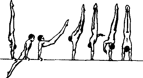 释义 | 前摆转体450°成横杠手倒立 前摆转体450°成横杠手倒立双杠高难度动作之一。这是由前摆转体360°(即季阿米托夫转体)发展而来的高难度动作。在支撑前摆接近水平部位时,撤一手,由另一臂支撑,身体“螺旋式”地上升转体450°,正反握撑杠成横杠倒立。此后可换成正握接横杠长振或横杠大回环。也可在成横杠倒立后顺势继续接各种类型的倒立转体。练习时可由教练员站杠外侧高台上帮助运动员完成动作。 ☚ 前摆转体270°经横杠倒立再转体270°成支撑 前摆一臂支撑转体360°成手倒立前翻一臂支撑转体360°成支撑 ☛ |