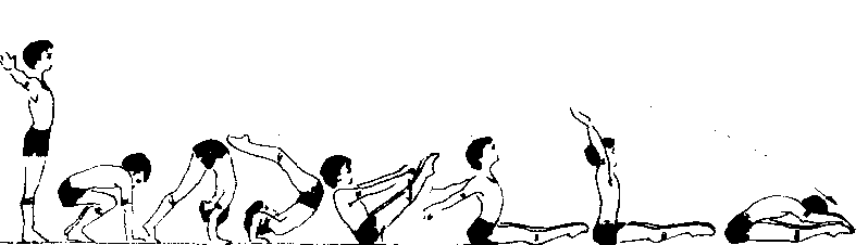 释义 | 前滚翻直腿坐 前滚翻直腿坐向前滚翻1周成直膝并腿坐的动作。动作要领:蹲撑,蹬地提臀同时,屈臂低头,使头后部、背、腰、臀依次着地,并收腹举腿向前滚翻,腿蹬离地面后伸直并拢,当腿后部着地时,上体前跟直立,抬头,挺胸。保护与帮助:保护者跪立练习者体侧,当练习者头后部将要着地时,一手顺势托颈,促其低头含胸向前滚动。 前滚翻直腿坐 ☚ 前滚翻 前滚翻分腿起 ☛ |