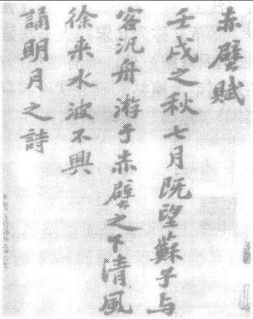 苏轼 壬戌之秋(1),七月既望(2),苏子(3)与客泛舟游于赤壁之下。清风徐来,水波不兴。举酒属客(4),诵明月之诗(5),歌窈窕之章(6)。少焉(7),月出于东山之上,徘徊于斗牛之间(8)。白露横江(9),水光接天。纵一苇之所如(10),凌万顷之茫然(11)。浩浩乎如冯虚御风(12),而不知其所止(13);飘飘乎如遗世独立(14),羽化而登仙(15)。 于是饮酒乐甚,扣舷而歌之(16)。歌曰:“桂櫂兮兰桨(17),击空明兮泝流光(18)。渺渺兮余怀(19),望美人兮天一方(20)。”客有吹洞箫者,倚歌而和之(21)。其声呜呜然,如怨如慕(22),如泣如诉,余音袅袅(23),不绝如缕(24),舞幽壑之潜蛟(25),泣孤舟之嫠妇(26)。 苏子愀然(27),正襟危坐而问客曰(28): “何为其然也(29)?” 客曰:“‘月明星稀,乌鹊南飞’,此非曹孟德之诗乎(30)?西望夏口(31),东望武昌(32),山川相缪(33),郁乎苍苍(34),此非孟德之困于周郎者乎(35)?方其破荆州、下江陵(36),顺流而东也,舳舻千里(37),旌旗蔽空,酾酒临江(38),横槊赋诗(39),固一世之雄也(40),而今安在哉?况吾与子渔樵于江渚之上(41),侣鱼虾而友麋鹿(42),驾一叶之扁舟(43),举匏樽以相属(44),寄蜉蝣于天地(45),渺沧海之一粟(46)。哀吾生之须臾(47),羡长江之无穷,挟飞仙以遨游(48),抱明月而长终(49)。知不可乎骤得(50),托遗响于悲风(51)。” 苏子曰: “客亦知夫水与月乎?逝者如斯(52),而未尝往也(53); 盈虚者如彼(54),而卒莫消长也(55)。盖将自其变者而观之(56),则天地曾不能以一瞬(57); 自其不变者而观之,则物与我皆无尽也(58),而又何羡乎?且夫(59) 天地之间,物各有主(60),苟非吾之所有,虽一毫而莫取。惟江上之清风,与山间之明月,耳得之而为声(61),目遇之而成色,取之无禁(62),用之不竭,是造物者之无尽藏也(63),而吾与子之所共适(64)。” 客喜而笑,洗盏更酌(65)。肴核既尽(66),杯盘狼藉(67)。相与枕藉乎舟中(68),不知东方之既白(69)。 〔注释〕(1)壬戌: 宋神宗元丰五年(1082 )岁次壬戌。(2)既望: 夏历每月的十六日。既: 过了。望:夏历每月十五日。(3)苏子: 作者自称。(4)属(zhu): 劝酒。(5)明月之诗: 指曹操《短歌行》,诗中有句:“月明星稀,乌鹊南飞。绕树三匝,何枝可依?” (6)窈窕(yaotiao)之章: 指《诗经·陈风·月出》的首章,“月出皎兮,佼人僚兮,舒窈纠兮,劳心悄兮。”窈纠,即窈窕。(7)少焉: 不一会儿。(8)徘徊: 形容月亮徐徐运行。斗牛: 两个星宿名,即南斗和牵牛。(9)白露: 指月光临照下的乳白色水气。横: 这里作笼罩解。(10)纵:任凭。一苇: 指小船。《诗经·卫风·河广》:“谁谓河广,一苇杭(航)之。”所如: 所往。(11)凌: 越过。茫然: 旷远的样子。(12)冯(ping): 通“凭” ,依仗。虚: 太空。御: 驾驭。《庄子·逍遥游》:“列子御风而行,泠然善也。” (13)所止: 停留。(14)遗世: 遗弃人世。(15)羽化: 道家认为人飞升成仙叫羽化。登仙:飞入仙境。(16)扣:敲。舷: 船边。(17)桂櫂(zhao): 桂木做的棹(即桨)。桂、兰:桂木、木兰,均为香木。(18)空明: 月光下江水明澈。沂:同“溯” ,逆流而行。流光:水面上闪动的月光。(19)渺渺:辽远的样子。(20)美人:借指自己所倾慕的人。(21)倚歌: 随着歌声。和:应和。(22)怨:哀怨。慕: 爱慕。(23)袅袅(niao): 声音婉转悠长。(24)缕:丝缕。(25)舞: 使动用法,“使之舞” 之意。幽壑: 深涧。(26)泣:使动用法,“使之泣” 之意。嫠(1i)妇:寡妇。(27)愀(qiao)然:忧愁的样子。(28)正襟: 整好衣服。危坐: 端坐。(29)何为其然: 为何如此。(30)曹孟德: 即曹操,相传曹操征东吴,屯兵赤壁,月夜观江景时作《短歌行》。(31)夏口:古城名,在今湖北省武昌市黄鹄山上,为三国时吴大帝孙权黄武二年(223)所建造。(32)武昌: 今湖北省鄂城县,非今之武昌市。(33)缪(liao):通“缭”,缭绕。(34)郁:草木茂盛的样子。苍苍:青翠色。(35)周郎:周瑜。因他任建威中郎将时只有二十四岁,吴中皆呼为周郎(见《三国志·周瑜传》)。困于周郎: 指汉献帝建安十三年(208),曹操率军征吴,被周瑜在乌林赤壁(今湖北省嘉鱼县东北)战败,退至南郡(今湖北省西部至四川东部一带)。(36)荆州:汉时荆州治在今湖北省襄阳县。下:攻下。江陵: 今湖北省江陵县。建安十三年,赤壁之战前,曹操曾打破荆州,刘表子琮降,而后曹操又攻克江陵,随后进军赤壁。见《资治通鉴·汉纪》。(37)舳舻(zhu lu):大船。(38)酾:斟酒,这里是饮酒的意思。临: 面对。(39)槊(shuo):兵器,即长矛。诗: 即《短歌行》。(40)固一世之雄:本是一个时代的英雄。(41)渚(zhu): 水中小沙洲。渔、樵: 这里都用作动词。(42)侣:与……做伴侣的意思。友: 与……做朋友的意思。麋(mi): 鹿的一种,即“麋鹿” 。(43)一叶: 形容船小象一片树叶。扁(pian)舟: 小船。(44)匏(pao):葫芦的一种,外壳可以做瓢。樽: 酒器。相属(zhu): 相互劝酒。(45)蜉蝣(fu you): 昆虫名,夏秋之交生在水边,朝生暮死,实际上只能活几个小时。(46)渺沧海之一粟:渺小得象大海中的一粒米。沧海:大海。粟: 谷子。(47)须臾(yu): 片刻,一小会儿。(48)挟(xie)飞仙以遨游: 与飞行于空中的神仙结伴游玩。挟:腋下夹着。遨游: 游。(49)长终: 永远的意思。(50)骤得: 突然得到。(51)遗响: 余音,这里指箫声。悲风: 悲凉的秋风。(52)逝:往。斯: 代词,这(江水)。《论语·子罕》: “子在川上曰: ‘逝者如斯夫,不舍昼夜。’”(53)未尝往也: (实际上)是未曾流去。(54)盈:满。虚:缺。(55)卒:到底。消长:消减和增长。(56)盖: 句首助词。将:表示假设的语气。(57)曾: 竟然,简直。以:相当“于