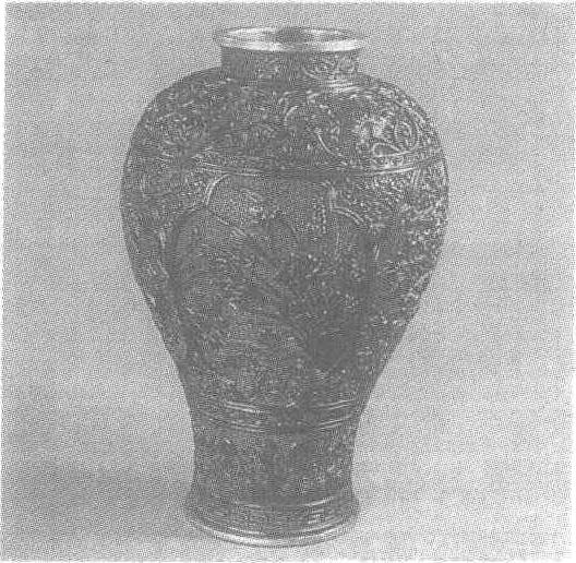 释义 | 剔黑开光花鸟纹梅瓶 剔黑开光花鸟纹梅瓶明中期。高28.7厘米,腹径18.9厘米。北京故宫博物院藏。小口、短颈、丰肩、圈足。红色锦纹地上遍雕剔黑纹饰。颈、肩为卷草和兰花,腹部上边四个花形开光中,点缀着禽鸟、四季花卉景致图,其下刻海水、异兽、游鱼,圈足饰回纹。此瓶纹饰细腻,线条流畅,刀法锐利,具有由早期的圆润向晚期的纤巧过渡的特点。剔黑见“剔黑花鸟瓶”条目。 ☚ “大明嘉靖年制”斑地松鹤纹雕填漆盘 “滇南王松造”剔红委角方盘 ☛ |