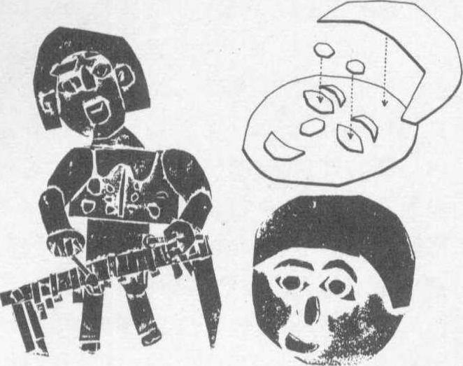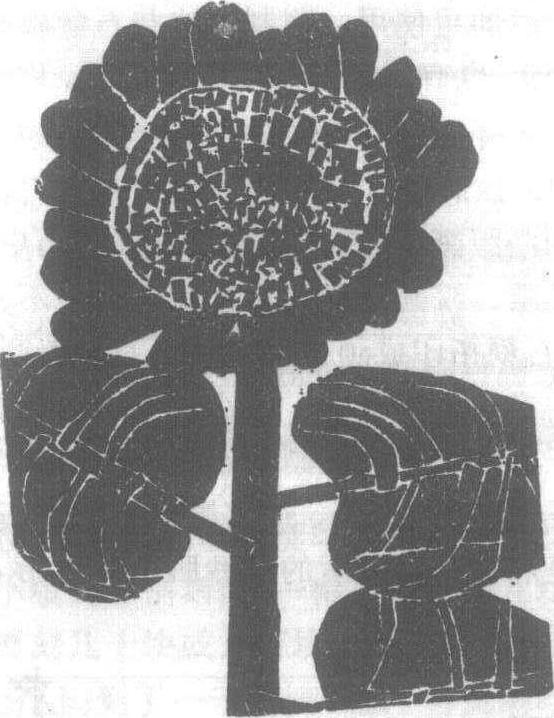 用稍厚的纸剪刻出形象的轮廓,贴于另一纸基上,可重叠贴二至三层纸,形成凸版,经过上墨或着色拓印,就会产生黑白浓淡的颜色变化。凸起部分墨色深,轮廓边缘呈白色,低凹的纸基上着墨少,形成浅色。如果不贴在另一纸基上,可印出一幅单独图象的剪贴纸版画。