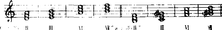 副三和弦按照与正三和弦共同音的多少,分别隶属于三个功能组,即主功能组,属功能组和下属功能组: