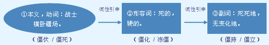 不活动,僵硬;引申为事情难以处理,停滞不前。 a.作谓语,可带补语。 百足之虫,死而不~|坐得太久,我的手脚都~了|事态如此~,真出乎意料|当大家找到小姐妹时,玉荣的脚已经~坏了|天太冷,我的脚~得不能动了。 b.作补语。 手冻~了|别把关系弄得太~|他们俩话说~了。 【词语】 僵持 僵局 僵尸 僵死 僵硬 僵直