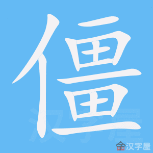 字源解说 畺,既是声旁也是形旁,是“疆”的省略,表示疆场、战场。僵,篆文 = (人,士兵)+ (畺,即“疆”,战场),造字本义:战士横卧疆场。 附 文言版《説文解字》:僵,僨也。从人,畺聲。 附 白话版《说文解字》:僵,倒地。字形采用“人”作边旁,采用“畺”作声旁。 引申线索