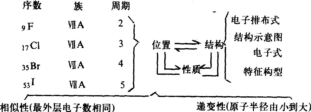 释义 | 化学知识展览 化学知识展览huaxue zhishi zhanlan学校或年级为了引起和培养学生学习化学的兴趣和爱好,鼓舞学生的学习热情,扩大他们的知识面,在特定的节日(五·一、十·一),特定的会议 (家长会、校庆),或初、高三总复中均可搞化学知识展览。 图1 化学平衡知识总结 可以有10种记忆规律,通过实例把记忆规律整理成表格。十大记忆规律为感知的记忆、理解的记忆、图式的记忆、对比的记忆、韵语的记忆、升华的记忆、联系的记忆、概括的记忆、顺序的记忆、循环的记忆。在每种记忆中均应有实例与具体内容相匹配进行展览。如,在韵语记忆中可展览“升失氧,降得还;若说性,两相反。高价氧化低价还; 中间价态两边转(氧化-还原反应)。”“三种微粒六种量,两素概念算清帐; 四种状态三原理,一套规律应记详。三键二力六数据,两种分子四晶体; 四种符号六图式,一定联系周期律。周期表格要牢记,变化体现周期律; 七主七副七周期,Ⅷ族零族镧锕系。同族金增非递减,同周金减非增递; 元素排布分四区,三角变化有联系(物质结构及周期律)。”❸理论联系实际的展览 把所学的理论 (电离平衡、化学平衡、结构理论、氧化-还原理论) 应用到元素化学知识上,以卤族为例,以结构理论为基础,卤族元素的位置、结构、性质三者的关系见图2。 1.最高正价为+1,负价为-1 1.气态氢化物的稳定性由强到弱 2.形成气态氢化物HR 2.最高氧化物的相应水化物的酸 3.最高氧化物相应水化物为酸HR4,F除外 性由强到弱 4.均为非金属元素 3. 非金属性由强到弱 图2 卤族元素的位置、结构、性质关系图 ☚ 铝制品的氧化与染色 化学实验展览 ☛ |