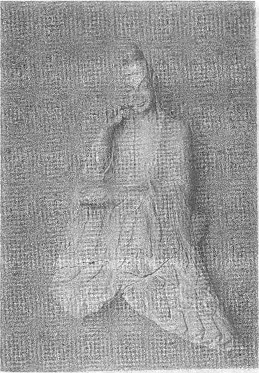 释义 | 半跏趺坐石雕佛 半跏趺坐石雕佛北魏。高52厘米。河南省洛阳市龙门石窟库藏。佛挽高肉髻,身披袈裟,头右倾,右手食指点腮,左手手心向上平展置于右腿上,半跏趺坐于石座上,宽大的裙裾重重叠叠地垂落地上。弯眉高挑,细目微微下视,作凝神思考状,面相清癯瘦长,神情安详恬静,形态颇为生动。 ☚ 石雕坐佛胸像 交脚弥勒菩萨石雕坐像 ☛ |