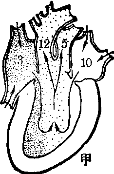 ☚ 大动脉转位 左侧三房心 ☛ 单心室 单心室单心室是一种少见的心室间隔缺损类型,心室间隔完全缺失形成三腔心(单心室型)。常合并大血管错位、肺动脉瓣下狭窄、主动脉瓣下狭窄、二尖瓣或三尖瓣闭锁等(图)。预后差。如无大血管错位且房室瓣也无畸形,则其临床表现类似巨大的心室间隔缺损,来自左心房的血液可流向主动脉,而来自右心房的血液可流向肺动脉,病人可无明显紫绀。如同时有肺动脉瓣下狭窄,则其临床表现类似法乐四联症,可有明显紫绀。如同时有大血管错位则形成“大血管错位伴单心室”畸形(见“大血管错位”条)。治疗主要是施行重建心室间隔手术。 单心室时心脏大血管内血流情况示意。来自左心房的动脉血与来自右心房的静脉血在单心室中混合,分别进入肺动脉和主动脉(与第8页正常者图比较)。 甲=单心室 ☚ 单心房 双腔心 ☛ 单心室 单心室single ventricle系左、右心室腔之间无间隔存在,两侧心房的血流分别通过各自的房室瓣口而入共同的心室腔,再由此腔分别注入主动脉和肺动脉。 ☚ 总动脉干 右位心 ☛ |