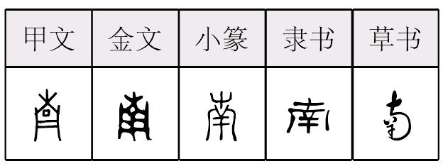 ❹ 塞北江南|塞上江南 南nán (金) (篆) 甲骨文、金文像一种瓦制的乐器。本义为乐器。《诗·小雅·鼓钟》:“以雅以南。”《诗经》中的“周南”、“召南”,与地方音乐有关。后借为方位名词。作声符生成的字有: nan 阳平:喃(象声词,喃喃自语) 楠(楠木) 上声:腩(牛腩) 蝻(蝗的幼虫,蝗蝻) lǎn 罱(罱泥船)