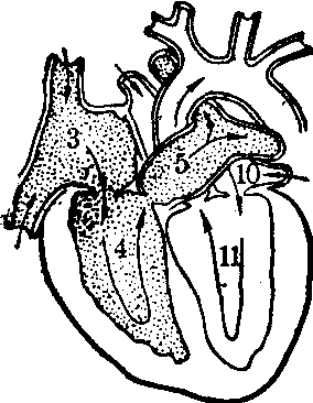 原发性肺总动脉扩张时心脏大血管内血流情况示意。除肺总动脉扩张外,血流情况与正常时相同 (与第8页正常者图比较)。