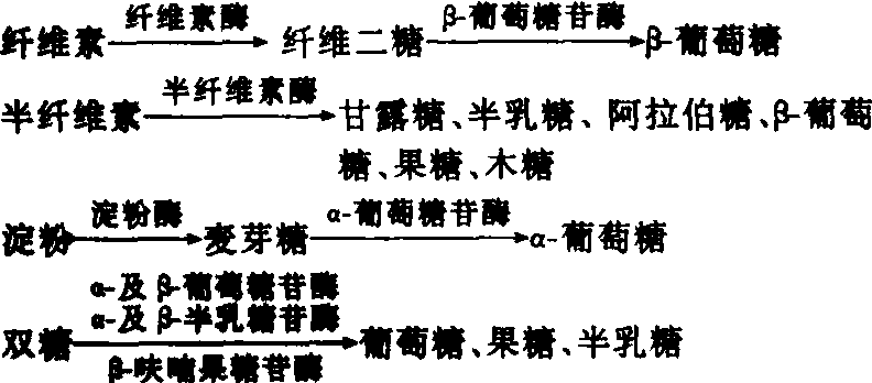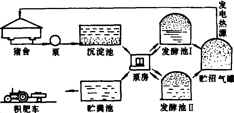 积制方法 厩肥的积制,可分圈内堆积和圈外堆积两种。还有圈内圈外相结合的方法。具体方法,应因地制宜。 圈内积制 最常见的有垫厩法和冲厩法两种。但有些地区常采用垫厩(春冬)和冲厩(夏秋)两者结合使用。❶垫厩法。即将秸秆、杂草、泥炭或细干土等垫料,垫在畜舍内,使垫料在牲畜的踏踩下,吸收排泄的畜粪尿与之充分混合,并在圈内初步腐解,过一段时间后起出圈外; ❷冲厩法。适用于群体饲养的畜群或机械化养猪场。即在畜舍的附近挖沤粪池,使畜舍与沤粪池相通,舍内的地面要坚实并稍带倾斜,每天用水把畜粪尿冲洗到舍外的粪池中沤泡。为避免养分损失,可在沤粪池上加盖。有些地区把冲洗出来的粪尿液引入沼气发酵池中,再用沼气液渣作肥料,充分利用能源。猪场粪便引入沼气池制取沼气综合利用如下图所示。 北京实验猪场粪便综合利用示意图 圈外积制 即将畜舍内起出的圈肥放在畜舍外堆积腐熟。按其堆积的松紧程度不同,可分为紧密堆积、疏松堆积和紧密疏松交替3种方式。❶紧密法。从畜舍内取出的圈肥,在选定的积肥场上层层堆积,每堆一层立即压紧,至1.5~2米高度(一般为2~3米的长方形堆积堆)。然后在堆的外面用泥炭或泥土封好,避免风吹雨淋损失养分和维持堆内嫌气条件,有利嫌气微生物的活动。堆积约2~4个月可达半腐熟状态。6个月以上达到完全腐熟; ❷疏松堆积法。堆制方法基本与紧密法相似,所不同的是堆积过程中不压紧,以保持好气高温下分解腐熟。这种方法,有机质及氮的损失比紧密法高; ❸疏松紧密交替法。是先采用疏松法堆积,并浇以粪水调节分解速度,待2~3天后,堆内温度可达60~70℃,以便杀灭病菌、虫卵及草籽等。待温度稍下降后,踏实压紧,然后再添加新鲜圈肥,照前面方法重复堆积至高达1.5~2米为止。再用泥炭或泥土封好。这种积制方法,有机质及氮损失少。 垫厩积肥起圈要勤起勤垫,以保持厩舍清洁和积制更多的厩肥。用猪、牛圈粪尿等积制的厩肥,一般称为冷性厩肥,马、羊厩肥一般属热性厩肥。堆制厩肥要遵守既要加速物质分解,又要防止养分损失的原则,因此要了解厩肥在堆制过程中的物质转化。 物质转化 厩肥在堆制过程中,要经历一系列的有机无机物质转化过程,才能腐熟。一般把复杂的有机物质转化形成简单的有机、无机物质的过程,称为矿质化过程;把矿质化过程中形成的中间产物再经转化合成为复杂的腐殖质的过程,称为腐殖质化过程。这两个过程都是在微生物和酶的作用下同时进行的。 矿质化过程 含碳化合物的转化 在厩肥堆积过程中把复杂的纤维素、半纤维素、多糖、双糖等,转化形成为简单的葡萄糖、果糖和半乳糖等,其反应如下: 在好气条件下,可再将葡萄糖、果糖及半乳糖等进一步分解成二氧化碳和水;如在嫌气条件下,则生成大量有机酸,最后形成甲烷和二氧化碳,反应为: 含氮物质的转化 粪尿中含有各种蛋白质氮和非蛋白质氮,这些含氮物质的转化,包括氨化作用、硝化作用和反硝化作用等过程。氮的这些转化过程是同时存在的,主要取决于水热条件而互有显隐。❶蛋白质氮的转化。首先由水解蛋白酶把蛋白质的肽键打断形成多肽,然后在肽酶的作用下形成氨基酸;之后氨基酸在不同条件下进行氨化作用,转化形成氨。其转化形式包括氧化、还原和水解等。其反应如下: 由氨基酸转化形成的氨,在好气条件下,可进行硝化作用形成硝酸盐,硝酸盐易淋失。硝化作用多在厩肥堆制堆的表面进行。硝酸盐在缺氧条件下,再继续转化形成游离化氮,而导致脱氮损失; ❷非蛋白质氮的转化。非蛋白质氮主要有尿素、尿酸和马尿酸。这些含氮化合物转化后都可产生氨(见畜粪尿)。 综上所述,含氮化合物分解的最终产物氨容易挥发损失。因此厩肥等有机肥料在堆制过程中,一般加入少量过磷酸钙等,以减少氮的损失。 含磷化合物的转化 厩肥等有机肥料中,常见的含磷化合物有核蛋白、卵磷脂、核酸、肌醇磷酸盐等,它们经水解可转化形成磷酸。其反应如下: 含硫化合物的转化 硫多数与蛋白质结合,所以硫的转化与氮化物的转化相似,先转化为含硫氨基酸。如半胱氨酸、胱氨酸、蛋氨酸、硫基丙氨酸等,在好气条件下,这些含硫氨基酸进一步转化形成硫酸盐;在嫌气条件下,则形成硫化氢(H2S)、甲硫醇(CH3-SH)、二甲基硫[(CH3)2S]等还原性物质。 腐殖质化过程 厩肥等有机肥料在堆制过程中,除有机物质的分解转化外,同时还进行合成作用,产生结构复杂的有机化合物——腐殖质,多数认为腐殖质形成大体分为两个阶段:第一阶段是形成腐殖质的原始材料阶段。如多元酚、醌化合物、木质素降解所产生的芳香族结构单位以及蛋白质降解所产生的各种肽、氨基酸等含氮化合物,是构成腐殖质的主要原始材料;第二阶段是将那些原始材料缩合形成复杂的腐殖质。但第二阶段的形成是个相当长期和复杂的过程,有些过程需要将厩肥施到土壤中再继续转化,才能完成整个过程。 施用技术 厩肥不仅是土壤圈微生物的碳源和土壤改良剂,而且是作物氮、磷、钾及其它养分的给源和载体,利用厩肥是促进作物养分循环和再利用的最好形式。厩肥一般用作基肥,每公顷用量22.5~37.5吨。施用量较大时,应均匀撒施后翻耕埋入土中;施用量少时,一般开沟施于播种行间。已腐熟的厩肥,在南方也可作为单季晚稻、杂交水稻、秋玉米等