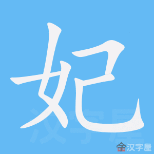 妃,甲骨文=(了,婴儿出生)+(女,妻子),表示产子之妻。造字本义:生了儿子的正妻。在重视传宗接代的封建一夫多妻时代,第一个生儿子的妻子被称为正妻,地位高于其他妻妾。金文调整左右顺序。篆文将 金文的“了”写成“己”。隶书将篆文的“女”写成