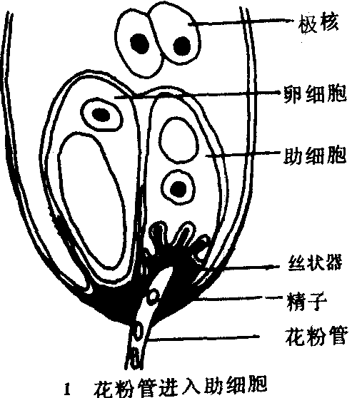 释义 | 双受精现象 双受精现象shuangshoujingxianxiang被子植物受精作用的一种独特现象。指被子植物雄配子体(成熟花粉粒)形成的两个精子,1个与卵细胞融合成合子(受精卵),另1个与中央细胞的极核(常为2个)融合形成初生胚乳核的现象。合子进一步发育成胚,初生胚乳核进一步发育成胚乳。可见胚乳也是受精的产物,与胚一样具有双亲的遗传特性。胚乳为胚的发育提供营养,这就使胚及其后代更加巩固双亲的遗传性并增强了生活力,从而有更强的适应性。所以说双受精是被子植物繁 图557 被子植物双受精中精子转移至卵细胞的图解 盛的重要原因之一。双受精现象最早由俄国植物胚胎学家С.Г.纳瓦申1889年研究了头巾百合(Liliummartagon)和细弱贝母(Fritillaria tenella)的受精作用中看到1个精子与卵融合,另1个精子与极核融合的现象而发现的。1899年法国植物胚胎学家L·吉尼纳尔(Guignard)也报道了百合属(Lilium)和贝母属(Fritillaria)中的同样现象,并绘出一套精美的图。后人的许多工作证实双受精是被子植物中普遍存在的现象。双受精过程分配子融合前及配子融合二期。配子融合前,首先是花粉萌发和花粉管在花柱中的生长,花粉落到雌蕊柱头上后,立即与雌蕊发生相互(识别)作用。亲和的种类,花粉萌发出花粉管并进入柱头,以后在花柱中生长。花粉管靠末端生长,到一定长度后原来花粉中含有的物质全部集中在花粉管末端。不亲和的种类,花粉管不萌发或萌发后生长很短,不能到达胚珠。其次花粉管进入胚囊和释放内含物。花粉管进入子房后沿子房壁或胎座继续生长,经珠孔进入胚珠,最后达到胚囊,花粉管内含物和2个精子从顶端放出,花粉管能沿一定道路生长的现象,多数学者认为是由助细胞分泌一些化学物质吸引的结果。配子融合期指精子和卵的融合过程。经用电子显微镜研究已证明是通过两细胞的局部质膜接触、溶解,进而两细胞融合。1973年美国植物胚胎学家W.A.詹森(Jensen)提出,被子植物双受精作用中精子转移到卵和中央细胞的模式图,精子先释放至退化的助细胞中,由于花粉管内容物释放时的力量将两个精子分别被释放到卵细胞的合点端和中央细胞的近珠孔端处,精子与卵的质膜首先接触溶解而使精子进入卵细胞质中。精子的细胞质是否进入卵细胞?过去认为只有精子核进入,细胞质不进入,上边的图解属此类型。但在红萼月见草(Oenotheraerythrosepala)的合子中发现有精子的质体,在白花丹(plumbago zeylanica)受精后的卵中也发现有精子的线粒体和质体,说明有些植物精子细胞质也参与融合。核的融合是配子融合的最后阶段。图558 被子植物双受精中精、卵融合过程的图解 早在1933年,苏联植物胚胎学家E·H·格拉西莫娃(Герасимовэ)等,对还阳参(菊科)受精作用中精、卵融合有详细的描述和绘图。据中国植物胚胎学家胡适宜1978年对向日葵、小麦、棉花和紫萼等植物受精的详细观察证明,被子植物精子核与卵核融合的基本过程是:(1)精核与卵核接触;(2)两核接触部分的核膜溶解;(3)精子染色质分散在卵核内,出现精子核仁;(4)两核的染色质融合;(5)两核仁合成1个,这标志精、卵融合的结束。精子与极核的融合有三种情况:有些植物2个极核先融合成1个次生核,后再与精子融合;有的植物精子先与1个极核融合后再与另1极核融合;也有的植物精子与2个极核同时融合。不论那种类型其融合过程与精、卵融合相似。精子与极核融合后叫初生胚乳核。从花粉落到柱头上起,到受精作用完成之间所用的时间因植物种类而异,时间短的只有十几分钟,如橡胶草(Taraxacum koksaghyz),长的可达1 年如栎属(Quercus),大多数植物为20~24小时,如水稻1~2小时,小麦(Triticum aestivum)1~4小时,玉米(Zea mays)25~26小时,甘蓝(Brassica oleracea)36~48小时。 ☚ 胚囊 荠菜胚的发育胚乳的发育 ☛ |