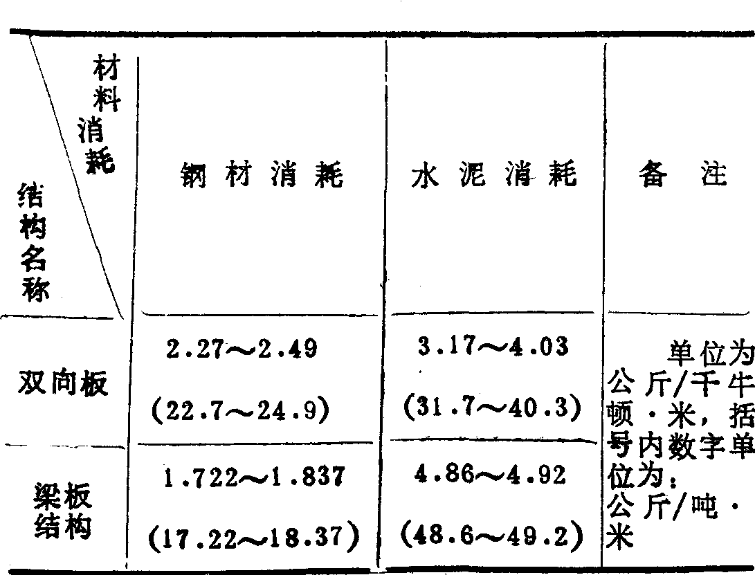字词 | 双向板和梁板结构的单位荷载——跨度钢材、水泥消耗指标 |