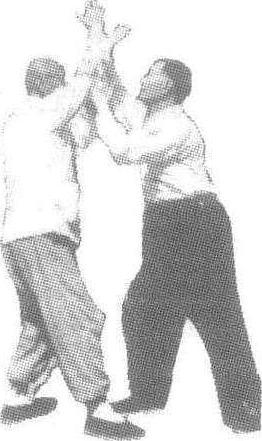 陈式太极拳式之一。左右手臂分别做小、大缠丝,并以腰带动合于身体左侧,此为欲右先左。双掌掌心向外、向前发劲推出;同时双脚随之上步。双臂缠绕的速度应一致,推掌、上步完整一气。如图。