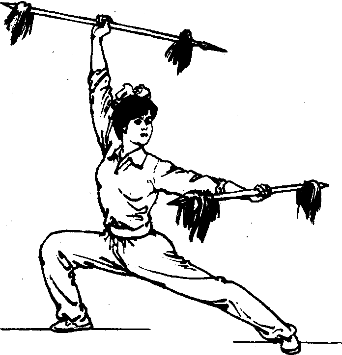 双器械套路。共有25式。主要动作有:左右点穴枪、青龙盘玉柱、二龙戏珠等。主要流传于河北、江苏等地。