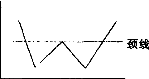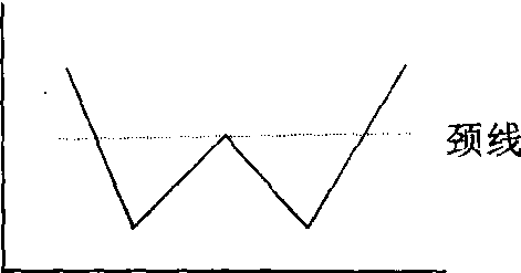 双重底 双重底double bottom亦称“W底型”。由两个等深或近似等深谷底所组成,是市场趋势由跌转升的一种形态。形态的完成以突破颈线为标志,颈线是过两谷底间高点的水平线(或平行线)。它与双重顶完全相反。如图10-25所示: