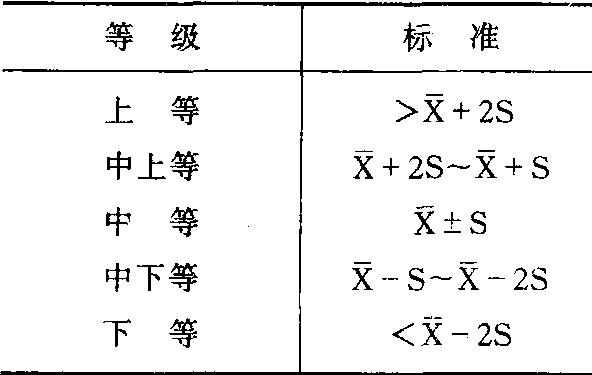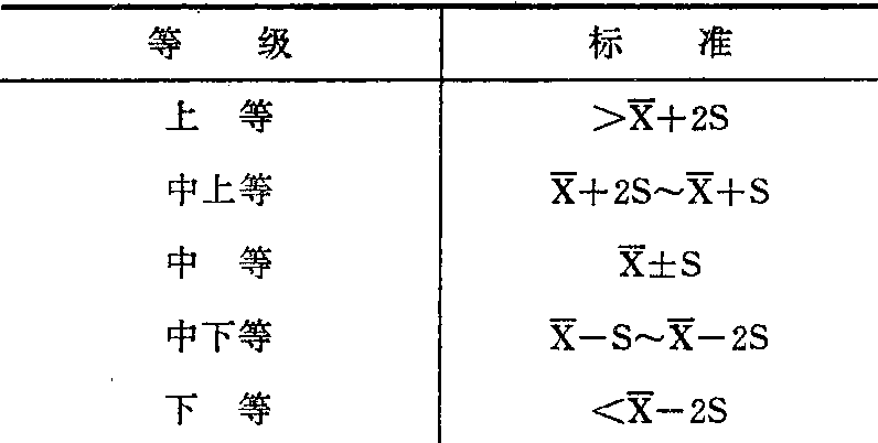 ☚ 发育离差评价法 发育曲线图评价法 ☛ 发育等级评价法 发育等级评价法发育等级评价法是最常用的离差评价法之一。它以均值()为基准值, 以其标准差(S)为离散距,制成生长发育评价标准。评价时将个体各项发育指标的实测数值与当地发育标准中同年龄、同性别相应指标的均值作比较,将其差数除以标准差,以获得超过或低于均值的标准差数,然后评定其等级。各国学者所分等级不同,国内常用五等级评价标准(见表)。 五等级评价标准表