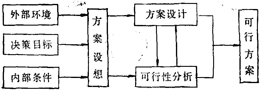 指可供选择的各种方案中,实施程序比较简单、实施条件容易满足,实现可能性较大的一些方案。可行方案必备三个条件: (1) 保证决策目标的实现;(2) 外部环境与内部条件都有可能性; (3) 排它性。探索与设计可行方案的过程如框图: