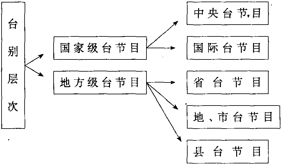 节目系统的构成层次之一。不同频率或频道上负载的广播电视节目属于不同的广播电台或电视台,这些不同的广播电台或电视台即构成了节目系统的台别层次。也就是说,广播电视节目系统由国家和地方多级电台或电视台的多套节目汇总而成。就我国任一地区而言,视听者可能看到或听到中央台(多套)、国际台(多种语言)、省台(一套或多套)、地市台(一套或多套)及县台等多种广播电台和电视台的节目,这些节目在台别层次上形成了该地区广播电视节目系统。