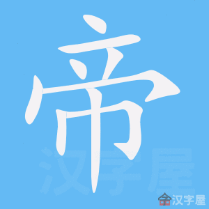 字源解说 帝,甲骨文 是指事字,字形在木柄 (木)上端加一横指事符号 ,表示装在木柄顶端的锋刃,在木柄 (木)中间加一圈指事符号 ,表示捆扎、固定木制武器的锋刃。有的甲骨文 淡化“木” 形,同时把顶端的一横指事符号 写成锋刃形 ,把一圈指事符号 简化成横写的“工” ,表示紧束、固定。有的甲骨文 加双手 ,表示手持“帝” 的武器。造字本义:带利刃的木柄武器。金文 承续甲骨文字形。有的金文 将甲骨文字形中表示紧束的指事符号“工” 写成“冂” ,将甲骨文字形中“木” 的下端 写成“巾”形 。篆文 承续金文字形。在以竹木为武器的原始部落时代,带刃的武器“帝”威力无比,所向无敌。使用带刃的木制武器的首领叫“帝”;手持特大战斧的首领叫“王”* ;文治天下的首领叫“君”* ;头戴金冠的王者叫“皇”* 。 附 文言版《説文解字》:帝,諦也。王天下之號也。从丄朿聲。 ,古文帝。古文諸丄字皆从一,篆文皆从二。 附 白话版《说文解字》:帝,最高称谓。又是君王统治天下的称号。 ,这是古文写法的“帝”。古文各个“丄”都采用“一”作字根,而篆文都采用“二”作字根。 引申线索