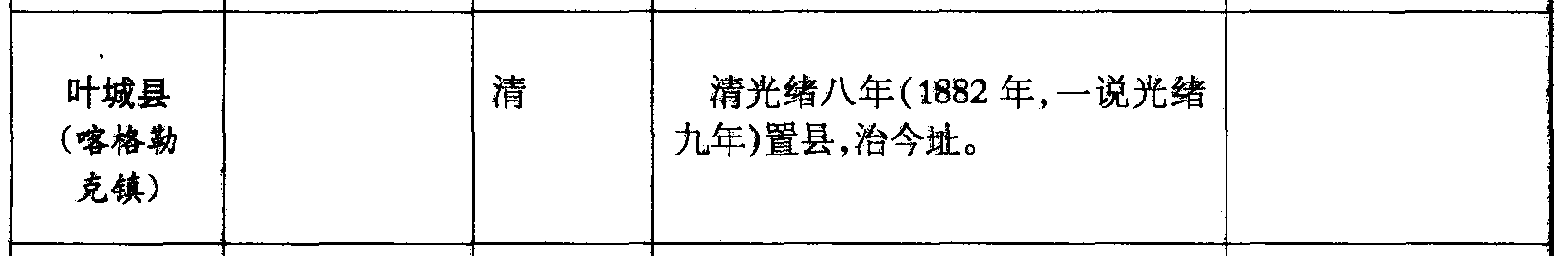 叶城县(喀格勒克镇)清清光绪八年(1882年,一说光绪九年)置县,治今址。