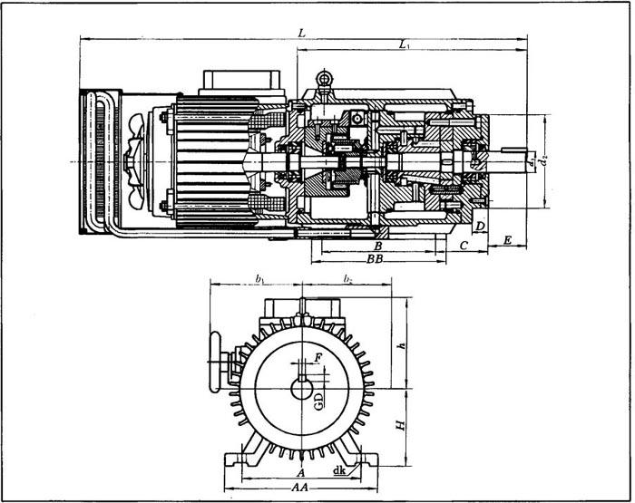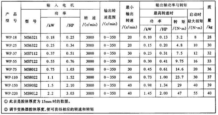 释义 | WP啮闭转子式液压无级变速器 (1)用途 WP啮闭转子液压无级变速器可以用于: (2)优点 ·转矩/转速选择范围大(可按用户要求设计) ·可实现无级变速功能的液压静力传动 ·转速调节范围从零转到输出转速 ·在整个转速范围内均可反向工作 ·在停车和运行中均可调节转速 ·逐步启动 ·加速均匀 ·转速稳定 ·输入轴与输出轴在同一轴线上 ·外形尺寸小、重量轻 ·维护工作量小 ·运行成本低 (3)工作原理 WP啮闭转子式液压无级变速器由一台电动机,一个轴向柱塞变量泵和一个啮闭式转子液压马达组合而成。由补给泵、变量操作系统、轴向柱塞变量泵、配流盘、汇流体、分流盘、啮闭转子马达、过滤系统、散热系统构成。 整个装置安装在一个铸造壳体内,轴向柱塞变量泵由回流油路和补给泵给油,在轴向柱塞变量泵的作用下,液压油经配流系统来驱动液压马达后,流经过滤器和散热器流回机壳。 补给泵和轴向柱塞变量泵由电动机直接驱动。柱塞变量泵产生的液压能驱动液马达,液马达输出轴输出转矩。 改变变量泵的斜盘角度来调节泵的流量,用流量控制液压马达的转速,实现无级变速。 向一侧推动换向阀时,可获相同转速和相同转矩,但方向相反(见图13.8-3)。 (a)结构图;(b)液压原理图 1-散热器;2-风扇;3-电动机;4-变量柱塞泵;5-补给泵;6-溢流阀;7-调压阀;8-油箱;9-换向阀;10-滤油器;11-啮闭转子马达 WP液压无级变速器采用了轴向柱塞变量泵和啮闭转子液压马达。轴向变量泵自动补偿间隙的端面配流结构,保证了泵可长期可靠地工作;液压马达的工作转子圆周力受力均匀,输出转速平衡,此外还配备有过滤系统、散热系统来提高寿命。 补给泵连续地向油路充油保证能平稳的起动和润滑所有的运动零件。油路上的溢流阀,可使额定扭矩在1.5~3倍的范围内变化,保证在重载下也能可靠地启动。驱动机构因故障而停机时,它可作为安全装置保护设备不受损害,当故障排除后,自动恢复正常工作。 (4)WP型液压无级变速器的性能参数和外形尺寸 A.性能参数(见表13.8-4) 表13.8-4 WP液压无级变速器性能参数 B.外形尺寸(见表13.8-5) 表13.8-5 WP型液压无级变速器外形尺寸 |