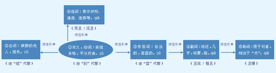 释义 | ![]() 〈文〉 有“暂且”的意思。表示在一个短时间内,先做某件事,别的事暂时不管。“别的事”有时是泛指,有时是实指。也有“姑且”的意思,表示让步的意味。常用在动词前作状语。 我~受用这无边的荷香月色好了|~请看那一树,油光碧绿的树叶中间托出千百朵重瓣的大花|你~先吃了饭,然后再谈事情。 ❶在书面语里,连接两个形容词或两个动词,表示并列关系,说明主语同时具有两种性状或两个动作,相当于“又”。两个“且”字连用,相当于口语里的“又……又…”或“一边(一面)……一边(一面)……”。 他的自由体操既灵巧~优美|“我什么时候跳进你的园里来偷萝卜?”阿Q~看~走地说。 ❷连接两个分句,表示递进关系,相当于“并”“并且”“而且”。 东方女性对爱情的追求不失热烈,~又带着一些幽默|此款乞代拓南阳石刻,~须由拓工拓,因为外行人总不及拓工的。 【近】 〈副〉权 姑 〈连〉❶又 而 ❷并 【词语】 且慢 字源解说 “且”是“刞”、“祖”和“宜”的本字。且,甲骨文 ![]() ![]() ![]() ![]() ![]() ![]() ![]() ![]() ![]() ![]() ![]() ![]() ![]() ![]() ![]() ![]() ![]() ![]() ![]() ![]() ![]() ![]() ![]() ![]() ![]() 附 文言版《説文解字》:且,薦也。从几,足有二橫,一其下地也。凡且之屬皆从且。 附 白话版《说文解字》:且,垫桌脚的草垫。字形采用“几”作边旁,像桌脚之间有二道橫杆,下面的一横,表示桌脚下的地面。所有与且相关的字,都采用“且”作边旁。 引申线索 ![]() 【字族索引】 且 【同音字】 jū qiě |