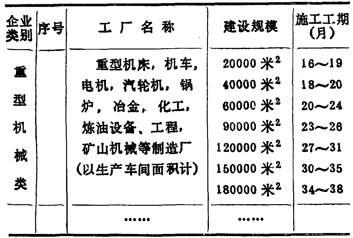 释义 | 合理工期是指在一定的建设规模、生产工艺、施工技术和施工组织条件下,从实际出发,结合具体情况,经过技术经济论证,或经过各方协商所确定的切实可行的施工工期指标。工期的长短直接影响到施工企业的经济效益,也涉及到投资效果能否及时发挥的问题。因此,合理工期应反映建筑业的施工生产水平和部门平均成本水平。 工业建设项目施工式期参考表 |